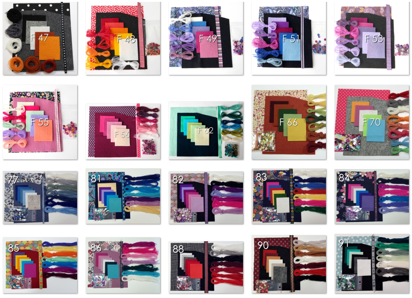 Satsen innehåller bottentyg (vadmal eller fast kläde), foder (mönstrat bomullstyg), minst sex färgmatchade tygbitar i ullfilt till applikation, ett dekorband, ullgarn i minst sju färger att brodera och montera med, vliesofix att fästa applikationerna med, en påse pärlor och paljetter till dekoration samt förstås ett ark med mönster och sömnadsbeskrivning.
